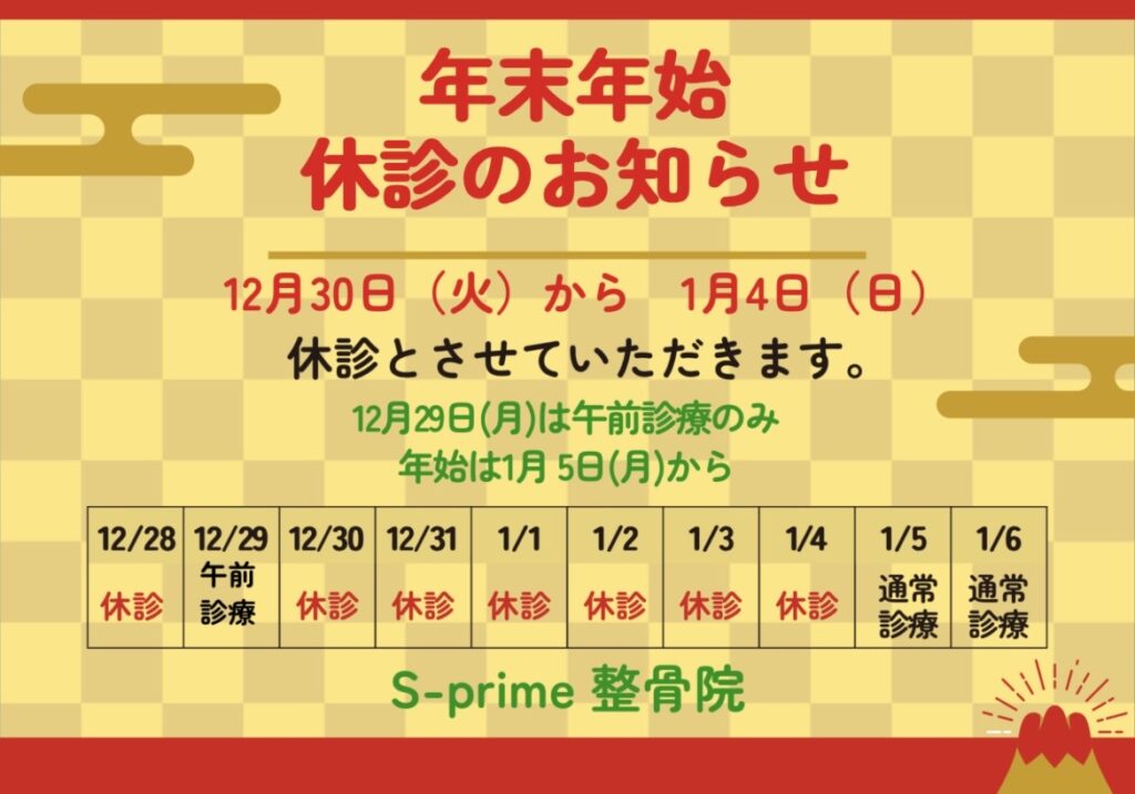 12月も後半になり、気忙しくお過ごしの事と思います。クリスマス🎄や忘年会🍻、大掃除🧹など、いつもとは違う過ごし方による寝不足や、体の使い方の変化で、バランスを崩しがちです、怪我を引き起こすトリガーが沢山ありますので、無理せず楽しみながら、休憩も取りながら、素敵に新年をお迎え下さい。